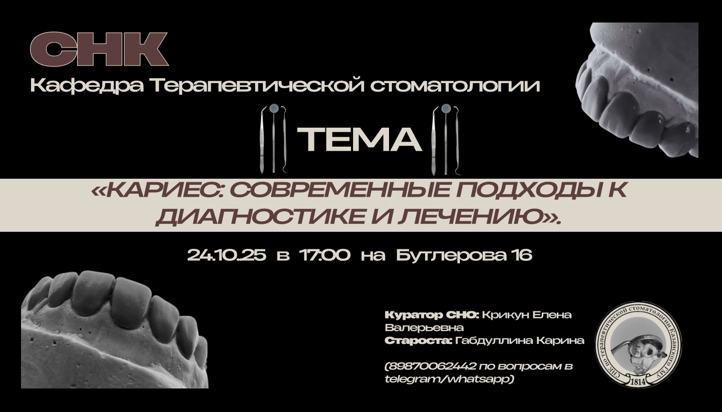 24.10.2025 прошло второе в 2025-2026 уч.г. заседание студенческого научного кружка на тему «Кариес: современные подходы к диагностике и лечению»
