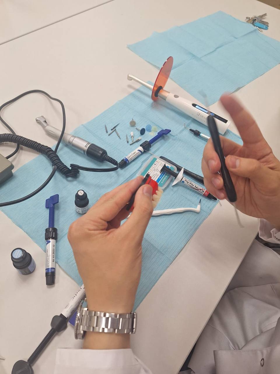 - Работа с роторными и реципрокальными инструментами: студенты получили ценный опыт работы с современным эндодонтическим оборудованием, что позволит им проводить лечение корневых каналов более эффективно и точно.