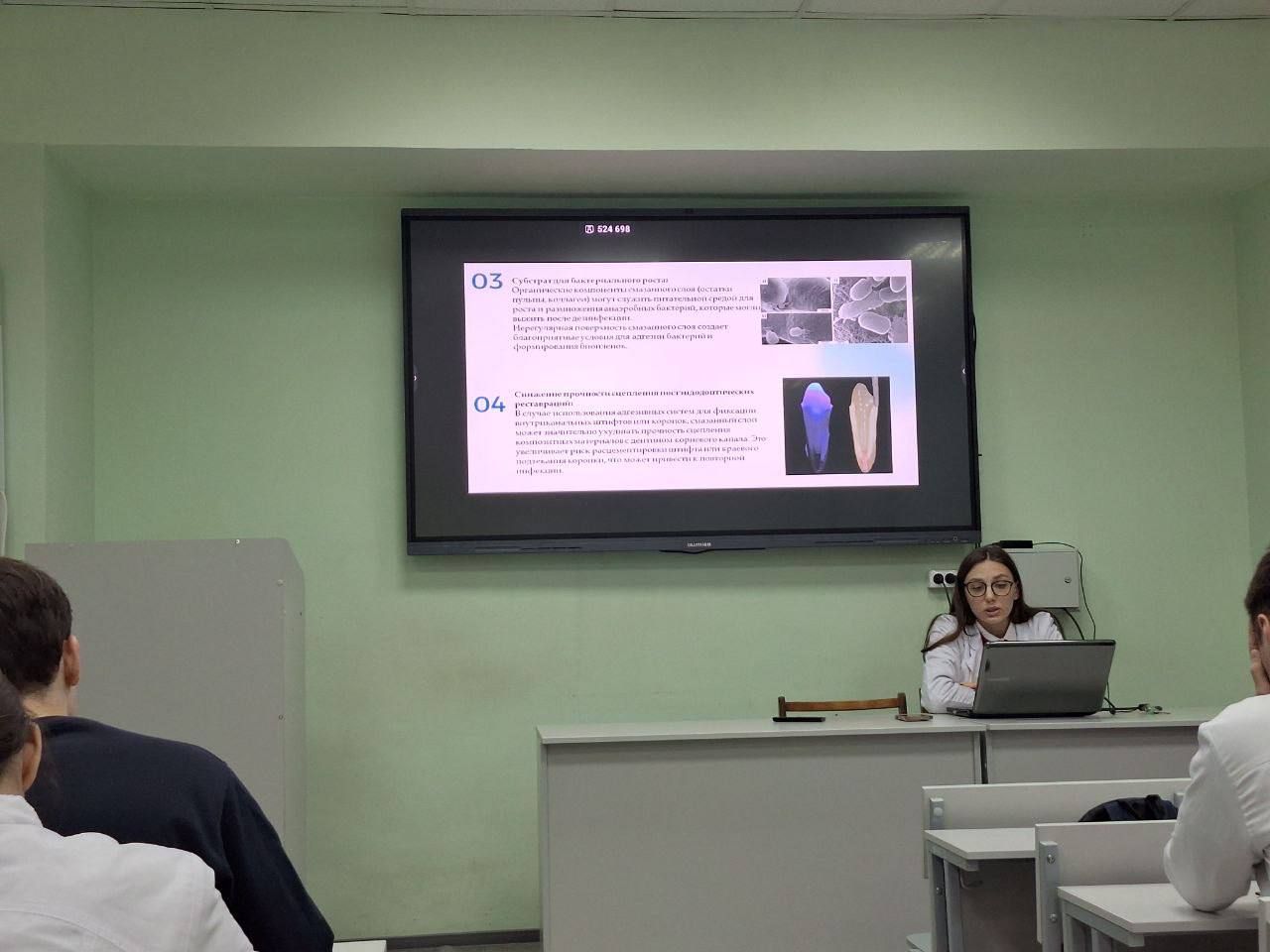 Студенты погрузились в увлекательный мир современной стоматологии, заслушав доклады своих коллег. Были затронуты самые актуальные вопросы подготовки полости рта к лечению, от диагностики до выбора оптимальных методик.